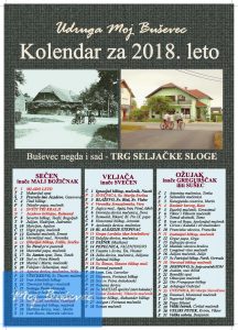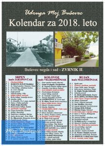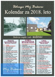 Kako se bliži kraj godine, mi smo opet pripremili pravi “Buševski kolendar za 2018. leto”. Tema ovogodišnjeg kalendara je “Buševec negda i sad” pa smo  u nekoliko fotografija prikazali kakav je  Buševec bio nekad, i kakav je sad. Naravno, imamo naše stare domaće nazive mjeseca i stara imena, označeni su blagdani, praznici, sveci…