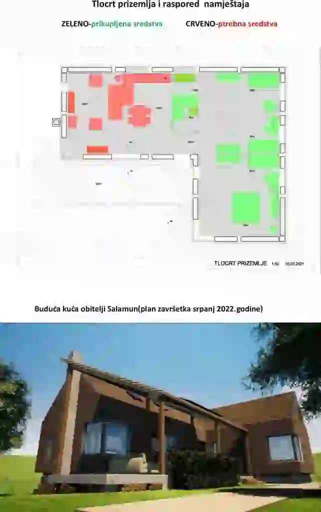 Na samom objektu do sada je odrađeno slijedeće: prikupljena je sva dokumentacija o uklanjanju objekta, objekt je uklonjen zajedno s temeljima koji su izvađeni, napravljena je nova projektna dokumentacija, pribavljene sve dozvole, napravljeni su temelji i upravo se montira drvena konstrukcija kuće (u svim ovim radovima mi nismo financijski sudjelovali). Svi radovi se izvode pod budnim okom nadzornog inženjera. Planirani dovršetak radova je srpanj 2022 godine. Po dovršetku i zatvaranju objekta bit će utrošena i naša sredstva za opremanje kuće sa svim potrebnim namještajem kao što smo vas upoznali u prvom pismu.